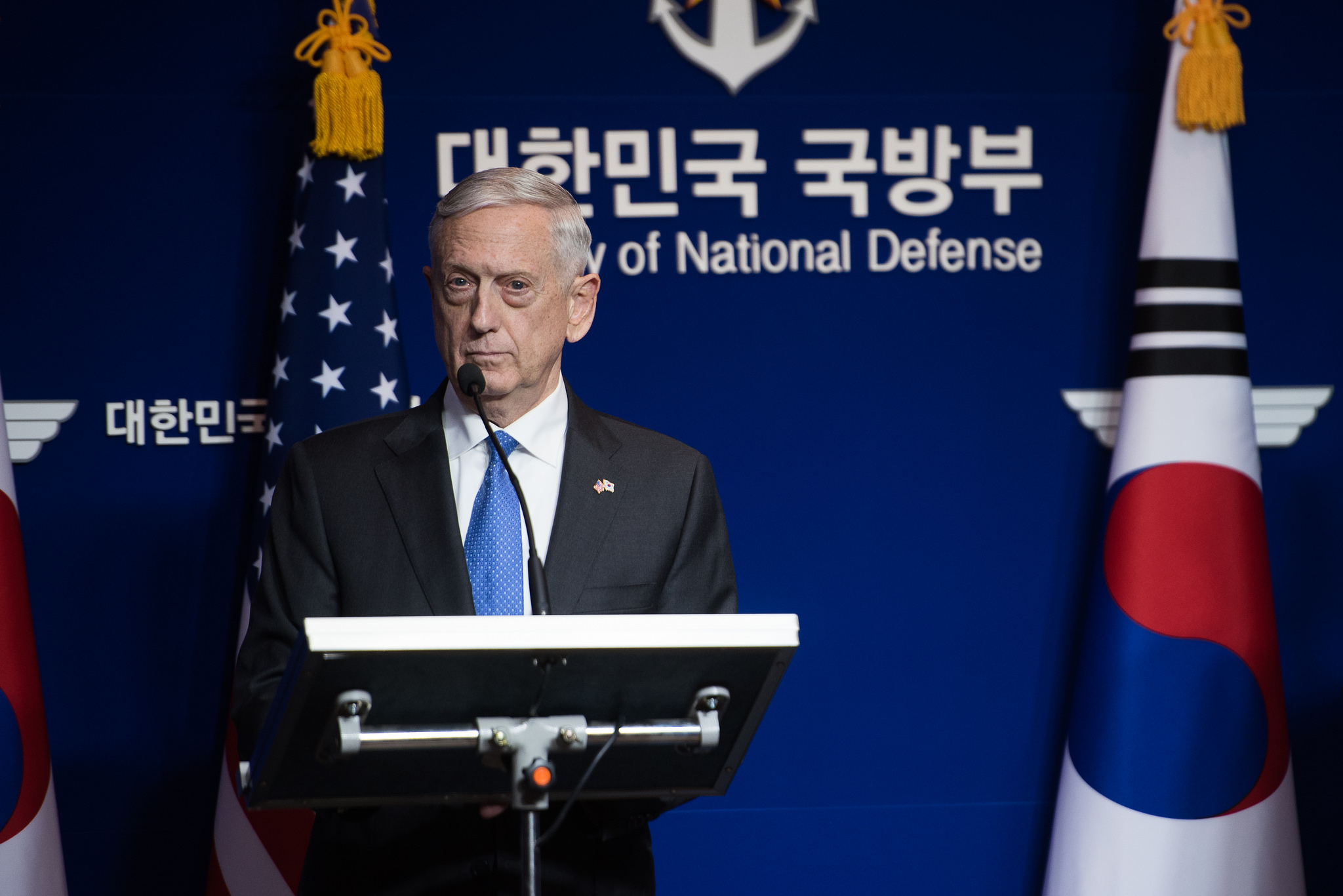 Defense Secretary James Mattis at a media conference following the 49th Security Consultative Meeting at the South Korean Ministry of Defense in Seoul, October 2017 (Photo: Jim Mattis/Flickr)