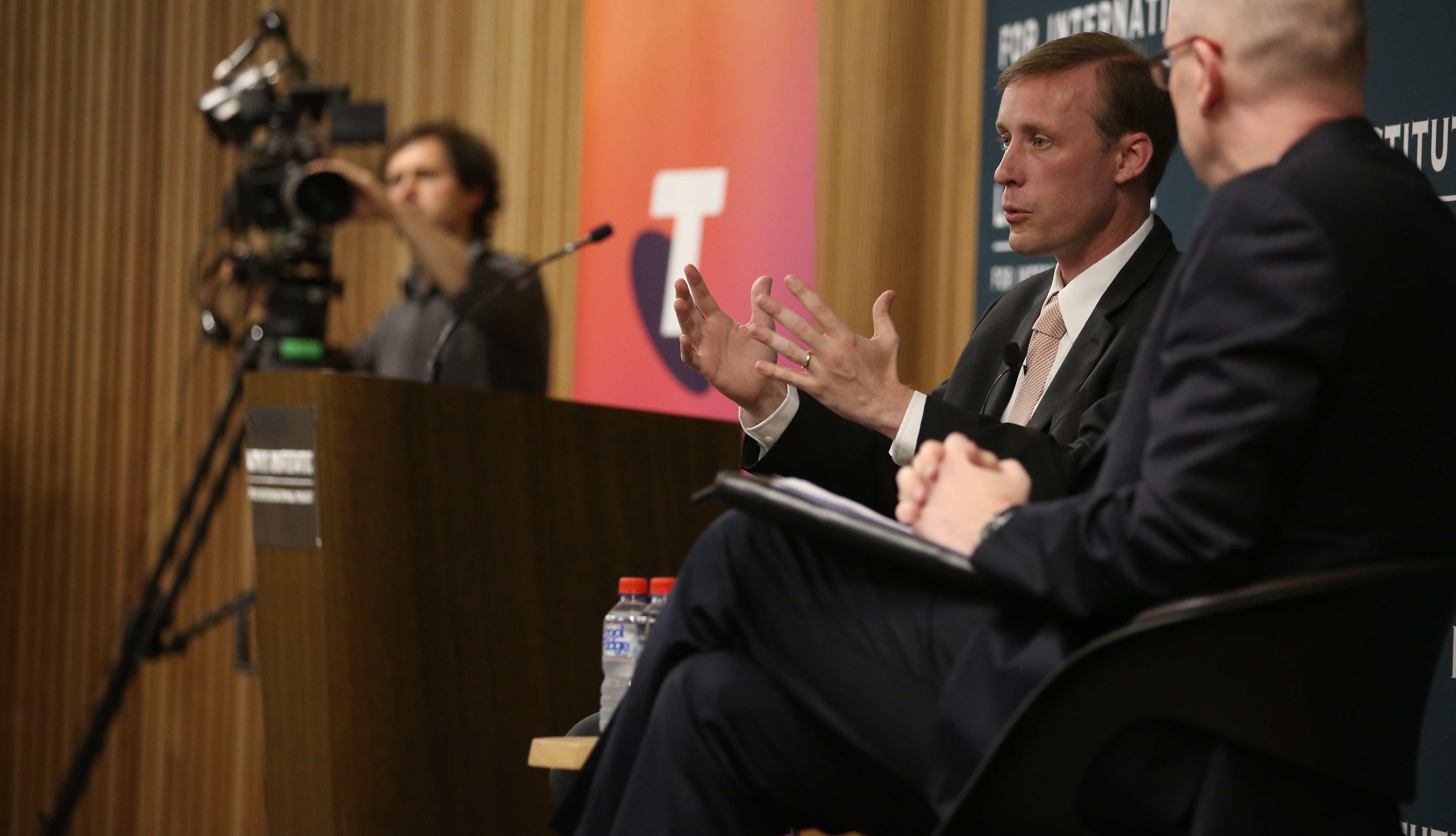 MICHAEL FULLILOVE Well, ladies and gentlemen, thank you for coming along this evening to listen to Jake Sullivan’s Harries lecture, and to listen to him, and to put questions to him.