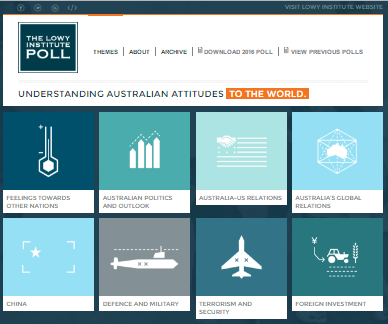 Lowy Institute Poll interactive site This article is more than 9 years old Interactives Lowy Institute Poll interactive site Lowy Institute Poll interactive site 21 March 2016 Click to see the interactive Top