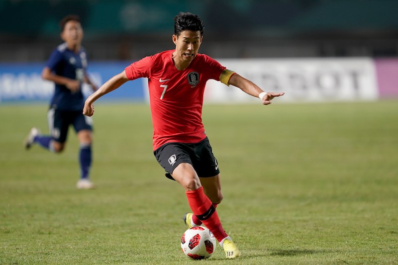 Son Heung Min during the gold medal match between South Korea and Japan at the Asian Games in Jakarta, Indonesia. (Photo: Allsport via Getty)