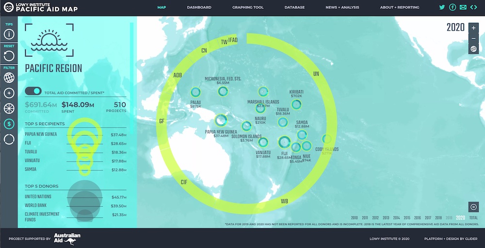 The third iteration of the Lowy Institute Pacific Aid Map, released today, adds new functionalities, including a commentary page and the ability to compare aid to local government spending in certain sectors, and two new years of comprehensive data for all Pacific donors – 2010 and 2018 – providing nearly a decade of project-level aid data for the Pacific. The headline result is a 25% surge in foreign aid in 2018 as geopolitical competition in the region began ramping up.