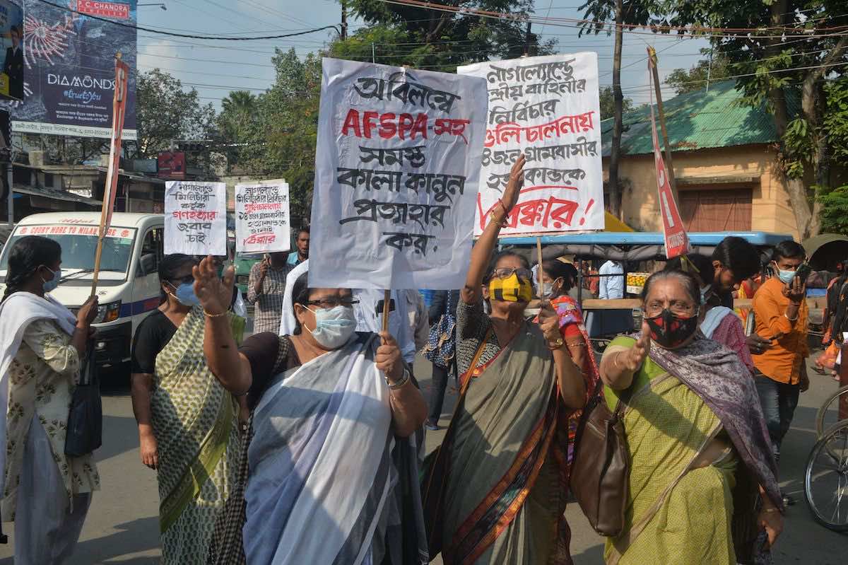 Protests in Siliguri over the killing of 14 civilians by Indian security forces in Nagaland in December (Diptendu Dutta/AFP via Getty Images)