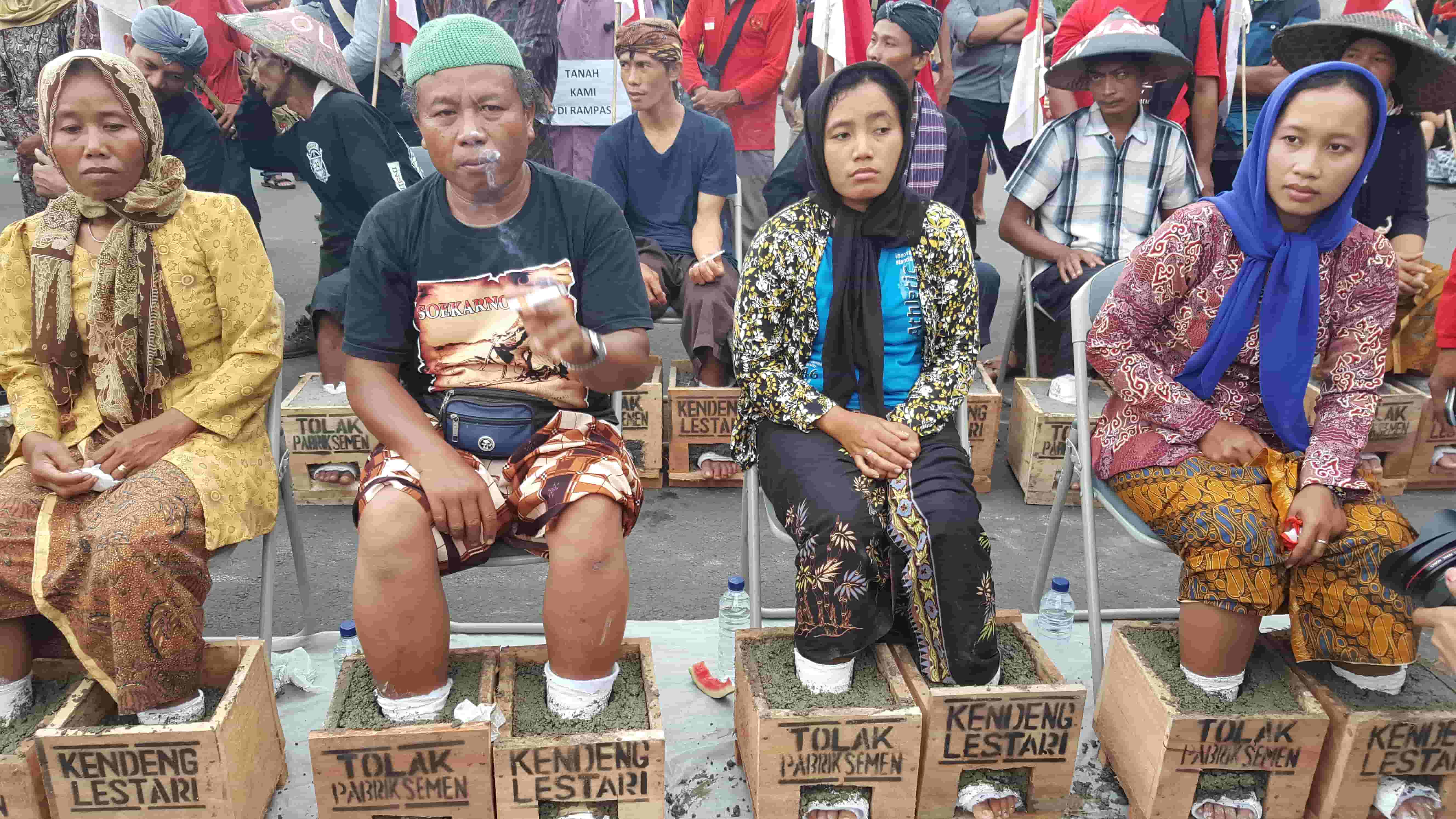 The protest ended after eight days when one woman, Ibu Patmi, collapsed and died after having the blocks removed.