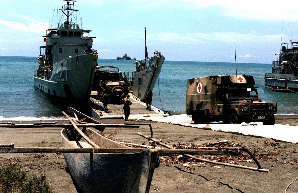 The entire logistical burden of projecting across the Timor Sea also largely fell on Darwin. Logisticians scrambled to source fruit, vegetables, bread, and engineering equipment at first locally, then transported from across the whole country to Darwin to ship on to Dili. The crisis placed immense pressure on Darwin’s port, which saw a 300% increase in activities, requiring urgent upgrades. The city also became the hub of international efforts overnight, hosting rear headquarters for the UN, foreign militaries, media outlets, and NGOs.
