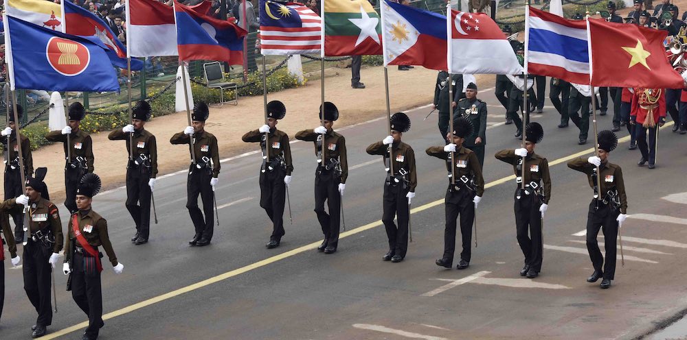 ASEAN flags on parade before the India-ASEAN summit in January 2018 (Photo: Mohd Zakir/Getty)