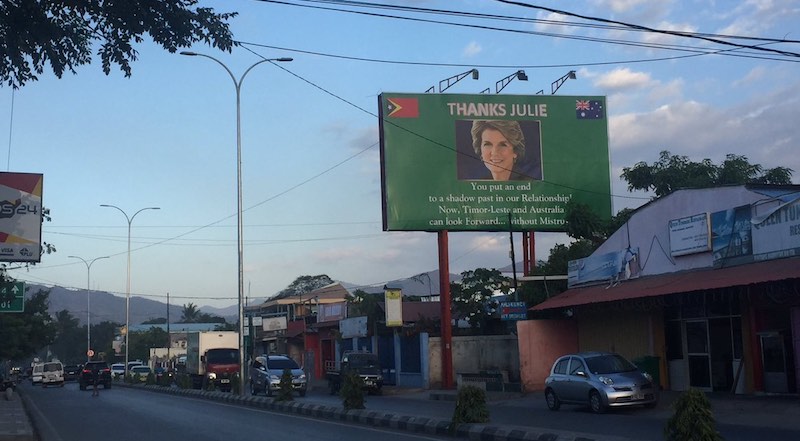 At the announcement of the treaty signing in March, green billboards appeared in Dili sporting Bishop’s portrait and the sincere message, “Thanks, Julie”. But if Bishop is hoping for that same easy appreciation now, a few months on, she’ll be disappointed.