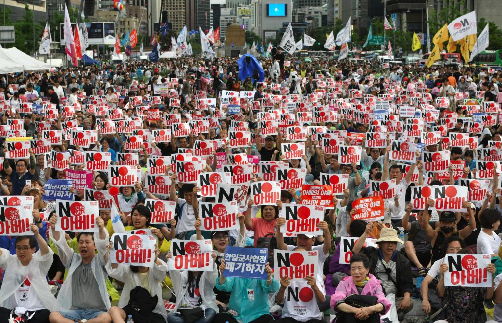 And the tensions have not just been at government level. The situation has inflamed public opinion in both countries. Large groups of Korean and Japanese citizens have protested. Two Korean men set themselves on fire outside the Japanese Embassy in Seoul. A Japanese citizen mailed a bullet to the Korean Embassy in Tokyo with a note warning: “I’ve got a rifle and I’m hunting Koreans.”