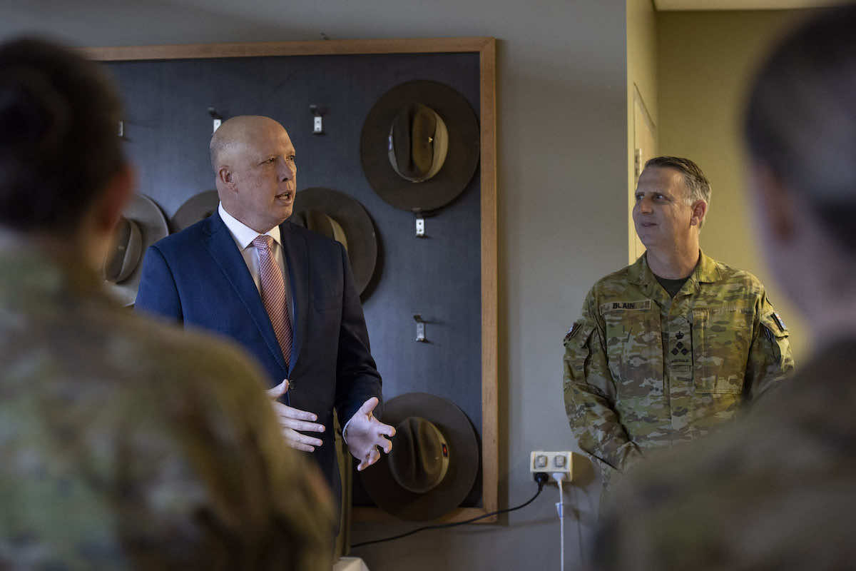 Defence Minister Peter Dutton (left) during a visit to Gallipoli Barracks, Brisbane in April (Department of Defence)