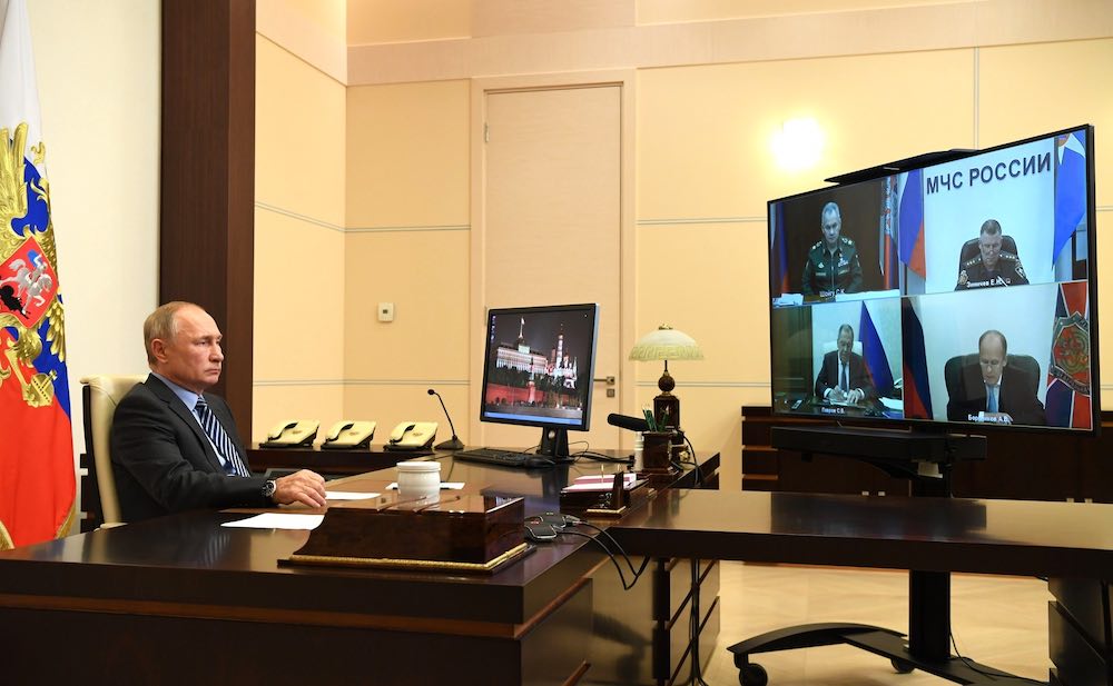 Vladimir Putin meets with Defence Minister Sergei Shoigu, Foreign Minister Sergei Lavrov, Emergencies Minister Yevgeny Zinichev and FSB Director Alexander Bortnikov on humanitarian issues in Nagorno-Karabakh, 13 November (Kremlin.ru)
