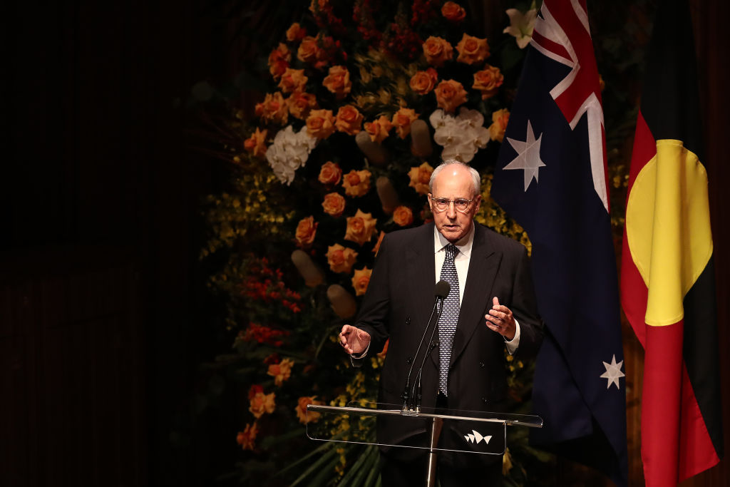 Former prime minister Paul Keating speaking at a memorial for his predecessor Bob Hawke at Sydney Opera House, 14 June 2019 (Mark Metcalfe/Getty Images)