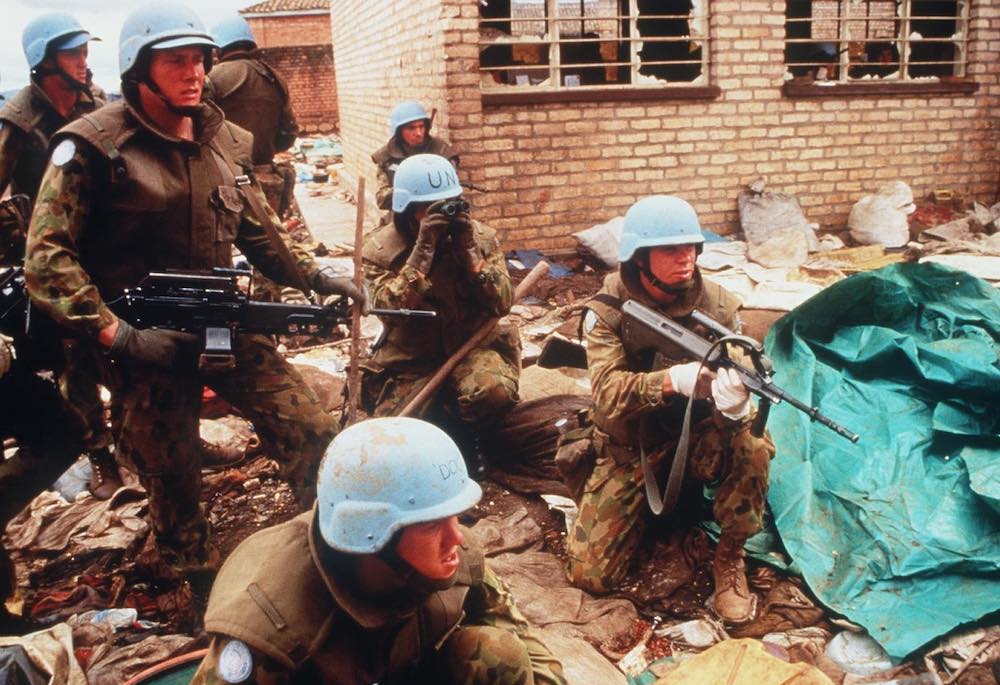 Australian troops went out with stretchers to retrieve casualties and bring them to the MSF hospital for treatment. When Rwandan troops started firing at the hospital, Lieutenant Steve Tillbrook moved his soldiers to the Zambian compound for mutual protection. In heavy rain, Rwandan troops entered the hospital compound and started shooting. In desperation, people surged over the razor wire and swamped the soldiers’ position. Lance Corporal Andy Miller ordered his troops to fix bayonets in case they needed to defend themselves.