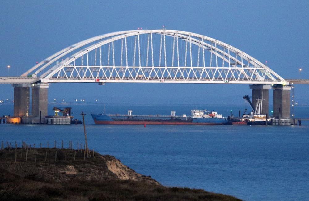 The bridge across the Strait of Kerch blockaded to passage on 25 November 2018 (Photo: Alexei Pavlishak via Getty)