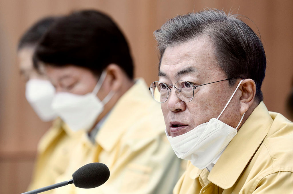 President Moon Jae-in during a special government meeting on 25 February to discuss measures to prevent the further spread of coronavirus (Getty Images)